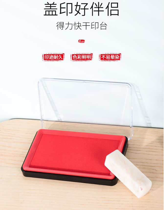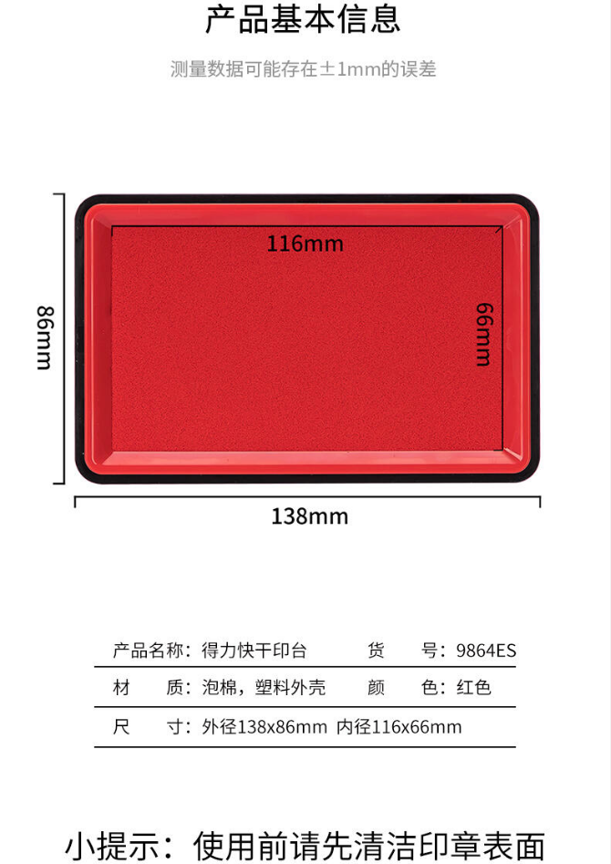 商品名稱:得力(deli)透明外殼方形快干印臺印泥快干財(cái)務(wù)印泥印盒按手印辦公用品 得力(deli)印臺9864ES 紅色