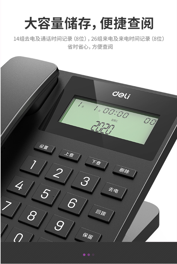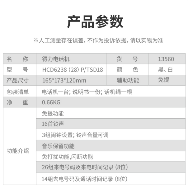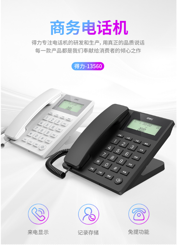商品名稱:得力(deli)電話機座機 固定電話 辦公家用 得力座機13560 黑色