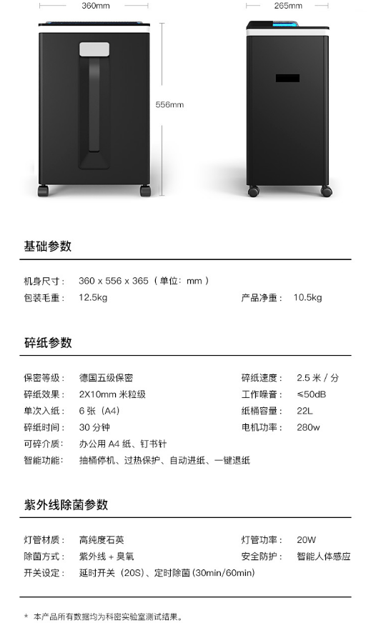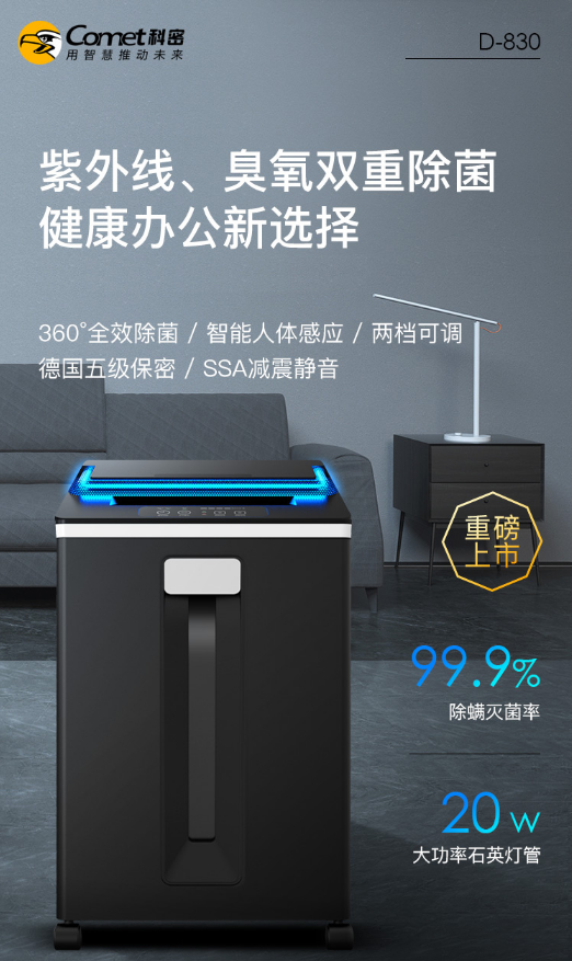商品名稱:科密(comet)碎紙機 紫外線臭氧除菌除螨 5級高保密減震靜音 辦公商用家用紙張粉碎機D-830