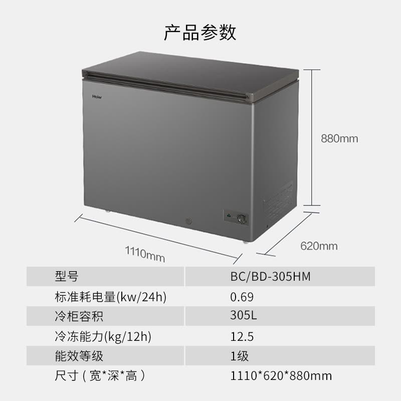 商品名稱:海爾(Haier)BC/BD-305HM 冷藏柜商用家用臥式冷柜冷藏冷凍速凍商用冰柜大容量冰柜