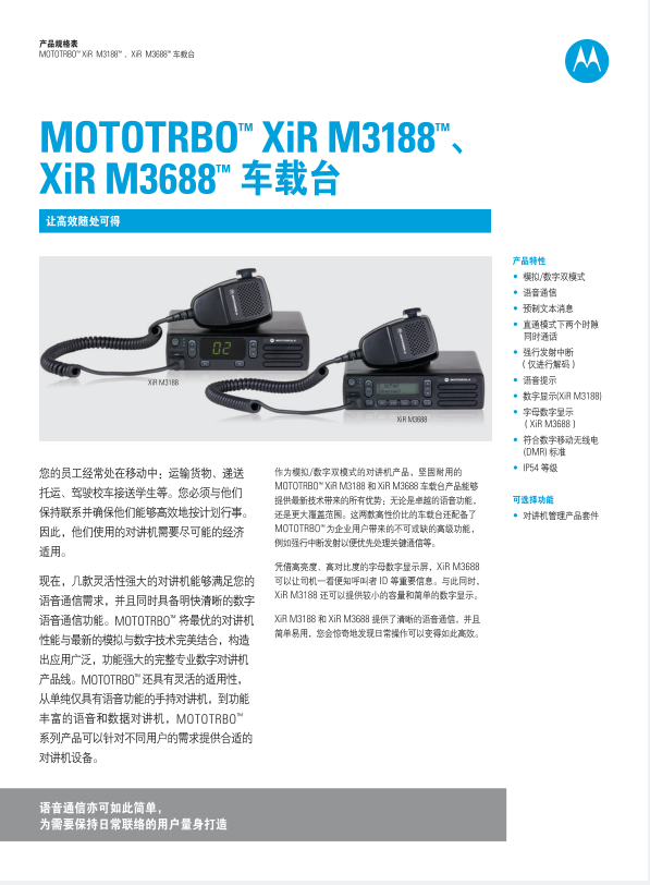 商品名稱:摩托羅拉(Motorola)XIR M3188 對講機(jī) 車載臺 數(shù)字車載電臺大功率 對講機(jī)數(shù)字顯屏 數(shù)模兩用車載臺