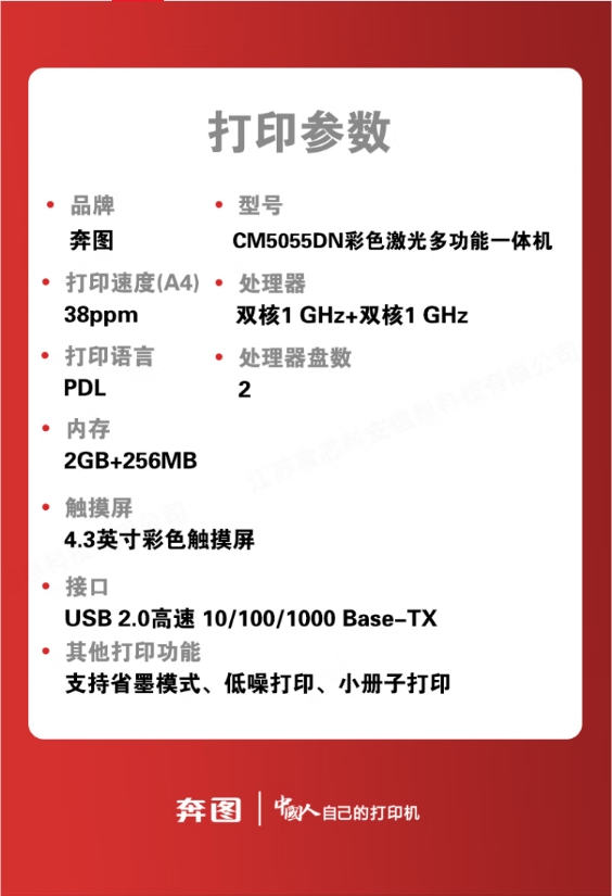 商品名稱:奔圖(PANTUM)CM5055DN A4彩色打印機 A4自動雙面彩色多功能一體機