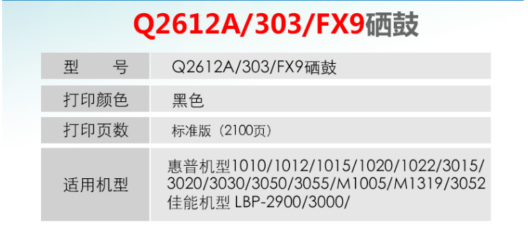 金格 Q2612A/303/FX9 適用惠普HP1020plus M1005 1010 1012 1015 3050 M1319f 佳能LBP2900硒鼓