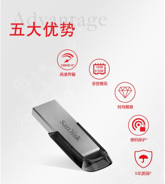 商品名稱:閃迪(SanDisk)U盤 CZ73酷鑠 USB3.0讀速150MB/s 閃迪金屬外殼16GBCZ73酷鑠