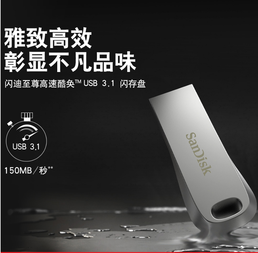 閃迪(SanDisk)USB3.1高速U盤CZ74酷奐銀色金屬外殼USB3.1 閃迪金屬U盤128G