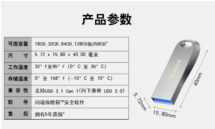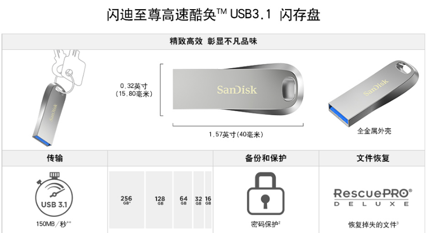 商品名稱:閃迪(SanDisk)USB3.1高速U盤CZ74酷奐銀色金屬外殼USB3.1 閃迪金屬U盤128G