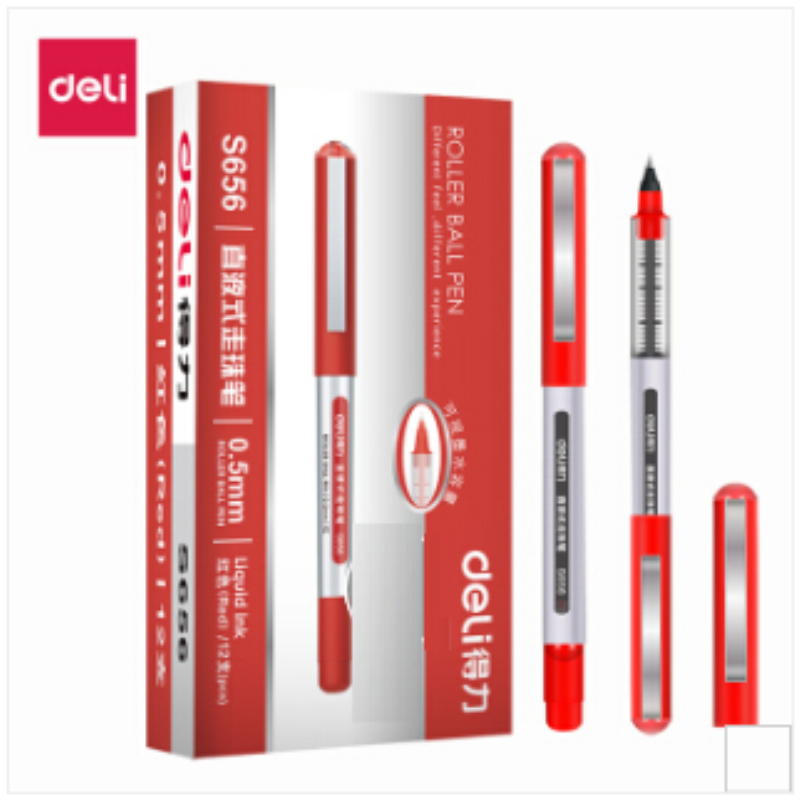 商品名稱:得力(deli)直液式走珠筆考試辦公中性筆簽字筆水筆12支裝 0.5mm 子彈頭紅色12支裝 得力直液式走珠筆S656