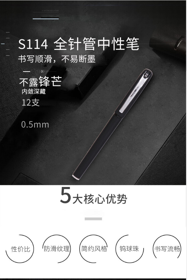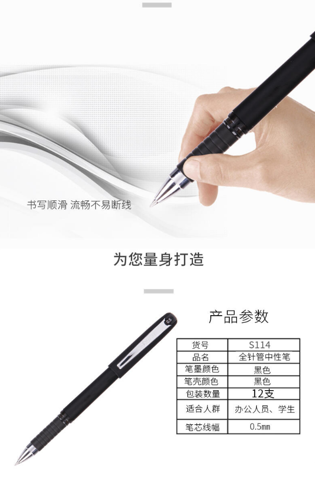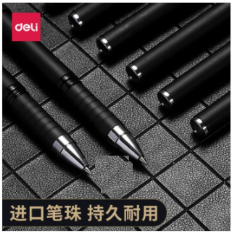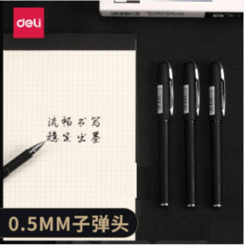 商品名稱:得力(deli)0.5mm子彈頭中性筆 磨砂桿黑色水筆 商務(wù)簽字筆 得力碳素筆12支盒裝 S114