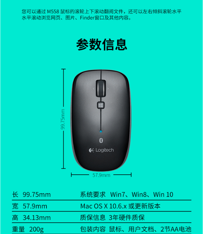 商品名稱:羅技(Logitech)M558鼠標(biāo)無(wú)線藍(lán)牙鼠標(biāo)辦公鼠標(biāo) 羅技(Logitech)M558鼠標(biāo)黑色