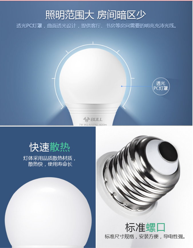 商品名稱:公牛(BULL) LED燈泡 9W球泡白光E27螺口6500K節(jié)能球泡燈螺口球泡燈 防頻閃公牛(BULL)E27