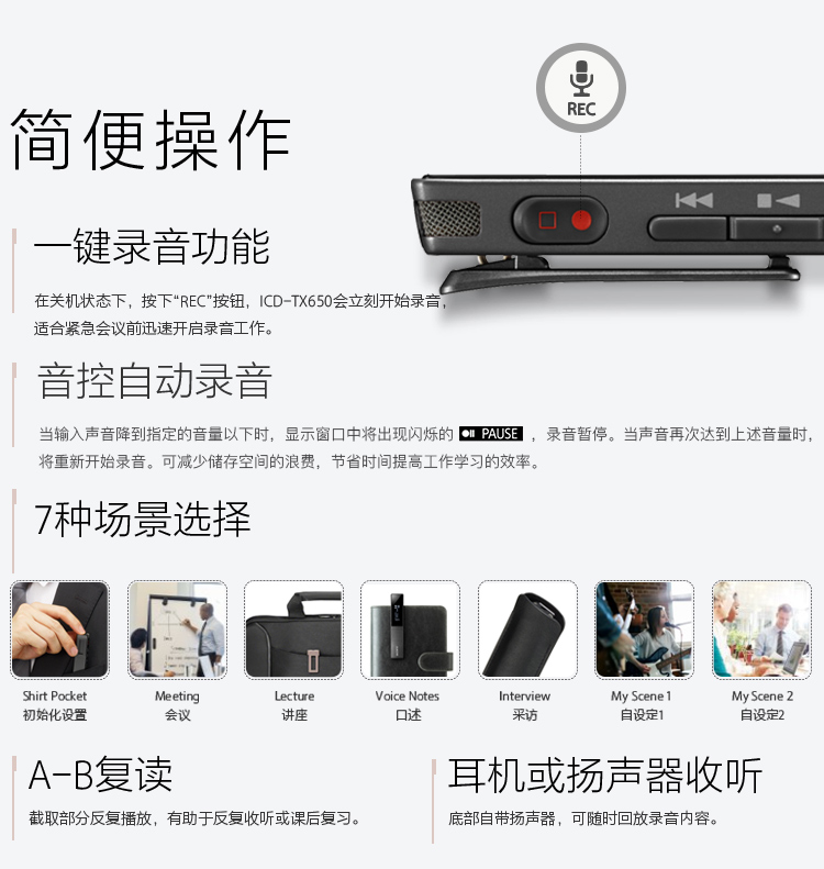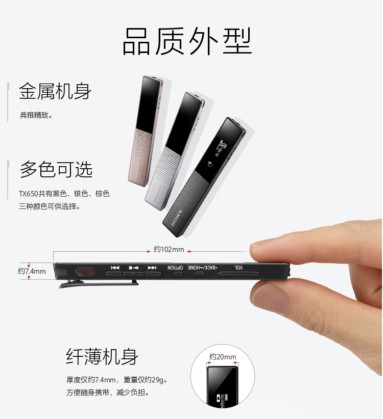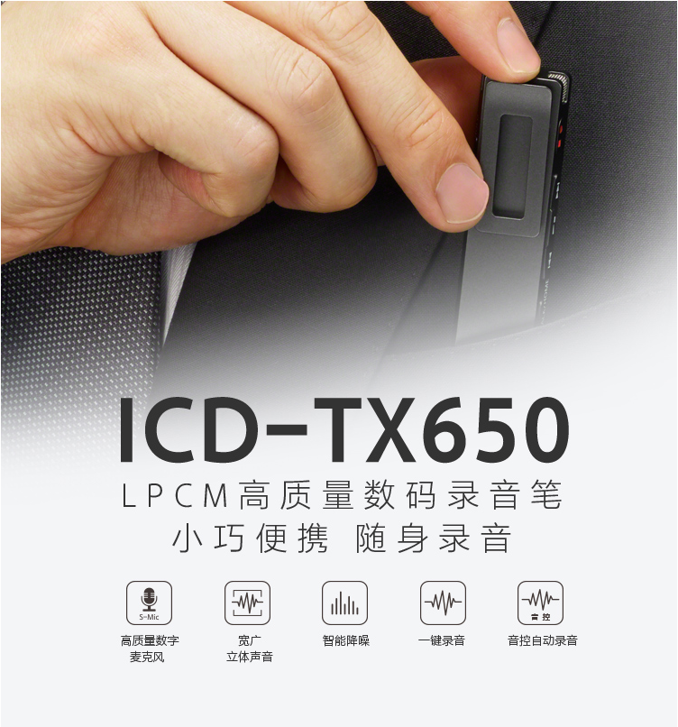 索尼(SONY)ICD-TX650 數(shù)碼錄音筆 商務(wù)會議采訪 專業(yè)智能降噪 微型便攜 16GB 黑色