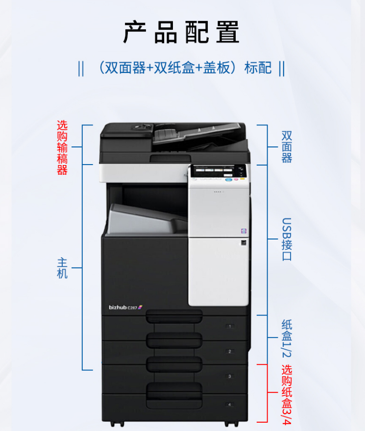 商品名稱:柯尼卡美能達(dá)(KONICA MINOLTA)bizhub287多功能一體機(jī)黑白A3打印復(fù)印掃描一體機(jī)
