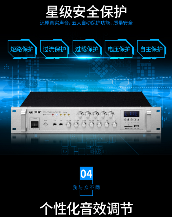 商品名稱:先科(SAST)MY-800 功率放大器定壓功放機(jī)專業(yè)分區(qū)大功率公共廣播背景音樂藍(lán)牙