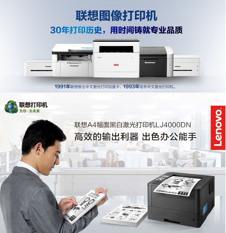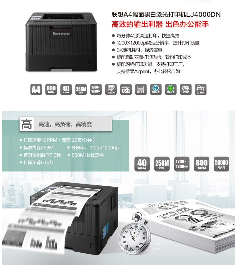 商品名稱(chēng):聯(lián)想(Lenovo)激光打印機(jī)LJ4000DN 黑白激光打印機(jī) 40頁(yè)/分鐘高速自動(dòng)雙面打印 辦公商用有線(xiàn)網(wǎng)絡(luò)打印