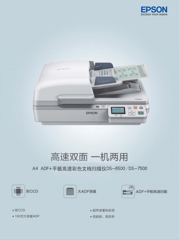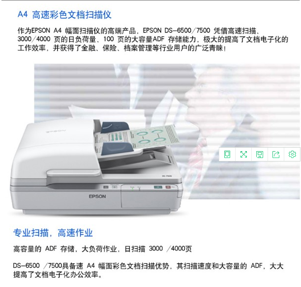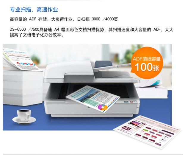 商品名稱:愛普生(EPSON)掃描儀 DS-6500自動連續(xù)平板+饋紙式雙面A4文檔高速