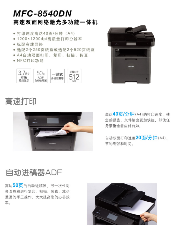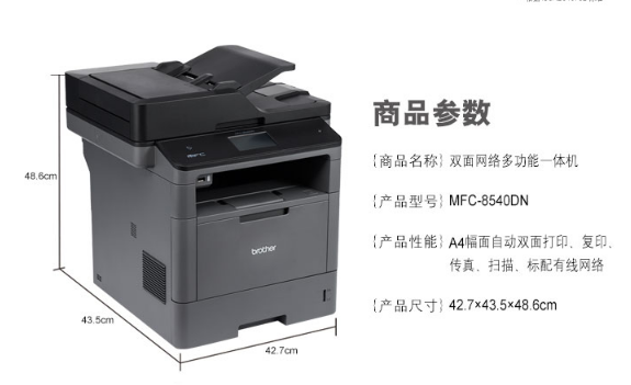 商品名稱:兄弟(brother)MFC-8540DN  多功能一體機 A4打印/復印/掃描/傳真 四合一 自動雙面 有線網(wǎng)絡(luò)