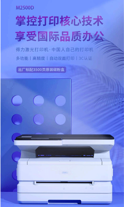 商品名稱:得力(deli) M2500DW 多功能一體機 黑白激光雙面 打印 復印 掃描