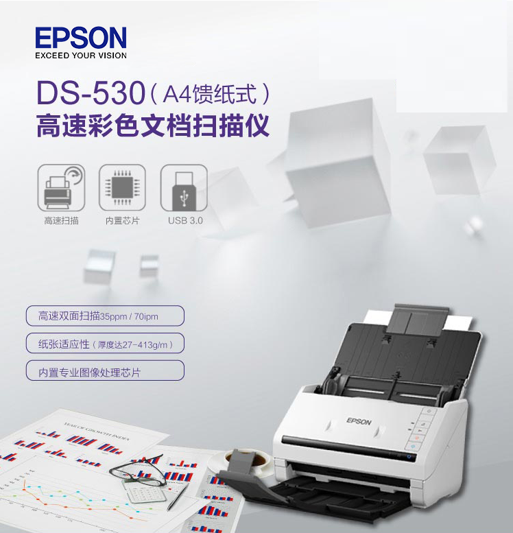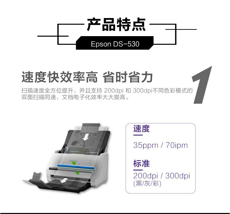 商品名稱:愛普生(EPSON)DS-530 掃描儀 A4高速饋紙式掃描儀 高清掃描 支持長紙掃描